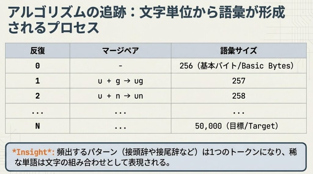 Byte Pair Encoding (BPE) の詳細実装アルゴリズム