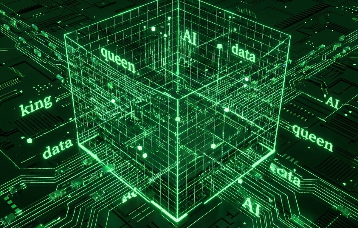 各トークンIDを、学習可能な数値ベクトルに変換します。学習を通じて、意味的に似た単語は近い位置に配置されます。