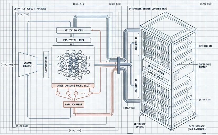 LLaVA-1.5単体では実世界の複雑な業務要件を満たせない。本プロジェクトは、このSoTAモデルを論エンジンとして中心に据え、LORA、Agent、RAGの3風情道で包み込むことで、本番帯物可能なシステム(The Vehicle)を構する