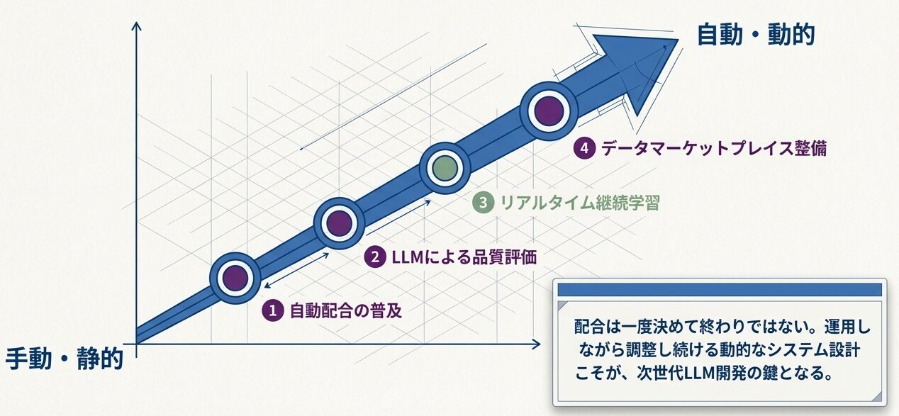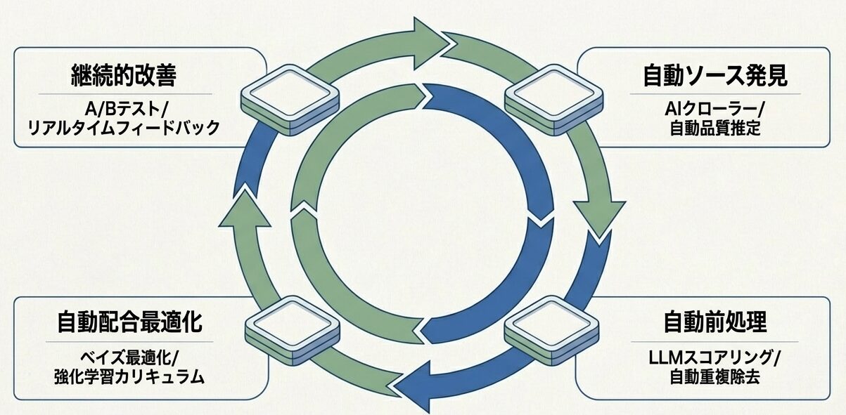 ただし、これは現時点では将来の方向性として扱うのが安全です。期待される効果としては、同じ計算予算でより高い性能を目指しやすくなることや、データキュレーションの人手を減らせることが挙げられます。