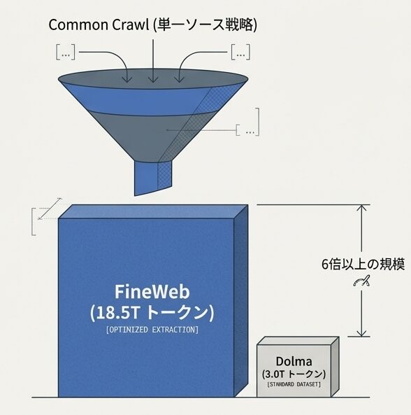 FineWebは、Common Crawlを土台にしつつ、Webテキストに強く寄せた大規模データセットです。